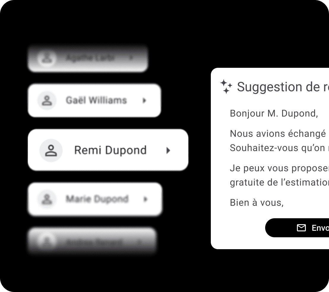 Il est entraîné pour comprendre vos enjeux immobiliers, vos cycles de vente et vos types de mandats.